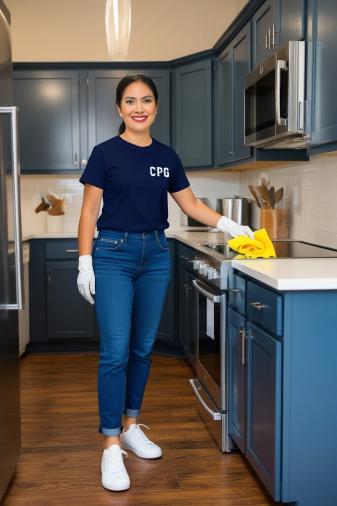 • Kitchen: Cleaning countertops, sinks, and appliances, wiping down cabinets, and restocking essentials.